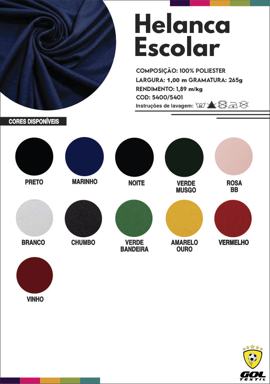 Composição: 50% Poliéster 50% AlgodãoCódigo: 2019Gramatura: 170 g/m² ±5%Largura: 1,20 m ±5%Rendimento: 2,45 m/kg